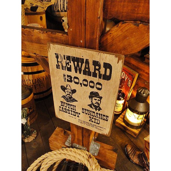 西部のお尋ね者ポスター 木製看板 (ブッチ・キャシディ)