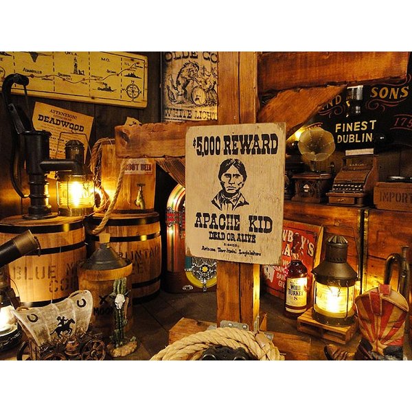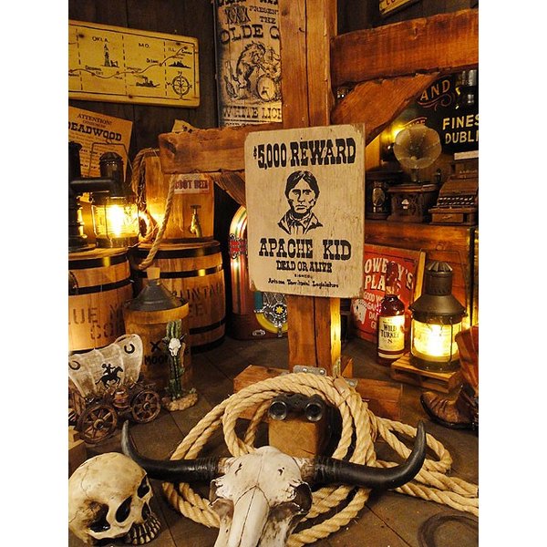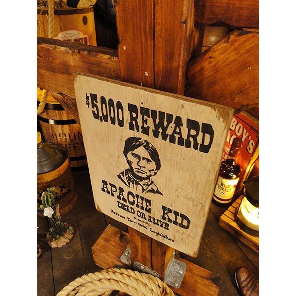 西部のお尋ね者ポスター 木製看板 (アパッチキッド)