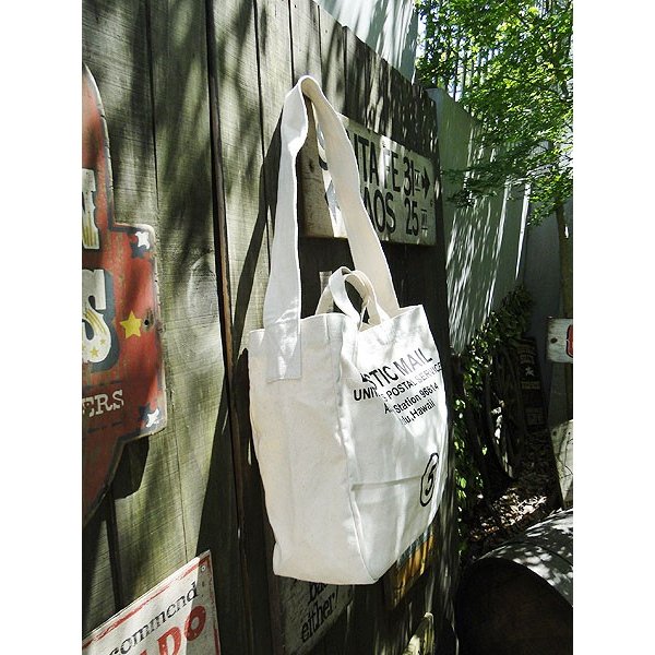 アメリカのポストの手紙を回収する時に使われてるメールバッグをモチーフにしたキャンバストートバッグです。