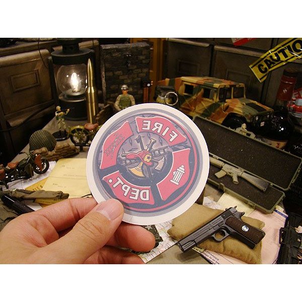クルマの車検証シールみたいに裏側から貼るタイプのファイヤーデプトのステッカーです。 伝統のエンブレムをそのままデザインにしたタイプで、こういう公共機関のステッカーが手に入るのもアメリカならでは感じ!ファイヤーマン好きなら車のガラスに貼ってみんなにアピールしたい気持ちあるんじゃない!たかがシール1枚なんて言わせない・・・・存在感あるアピールをしてくれるのはさすがこのマーク!実際に貼った姿はこの画像で見る3倍はカッコイイと思いますよ!( ̄ー ̄)ニヤリ☆サイズ:直径9cm(約)
