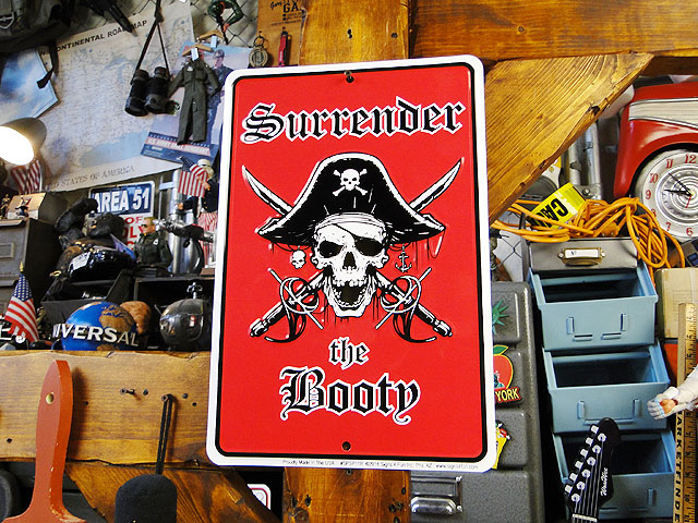 海賊たちの名ゼリフ「オイ、金をよこしな!」ってのをそのまんまデザインにした海賊好きのために用意された看板です。 バンダナしたスカルが剣をくわえているという見るからに悪そーなデザインが求めてた感じでしょ! 部屋のドアとか壁とかにちょっと乱暴にバシッと貼っておくと、海賊のアジトっぽい雰囲気が出るの!これで夜な夜な集まってくる悪友たちも満足か・・・・反応が楽しみだぜ!щ( ̄∀ ̄)ш サイズ:横20cm×縦30cm(約)
