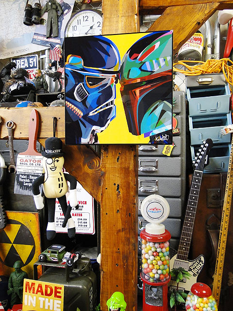 単なる写真デザインだといわゆるスターウォーズグッズのコレクションってくくりに見えちゃうけど、さすがアーティストだけあって、壁面を演出するアートとして成立させちゃう見せ方が絶妙なんです。