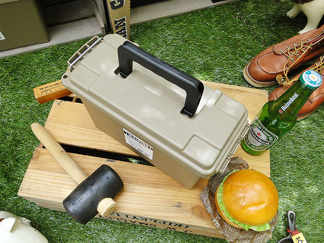 米軍が弾丸ケースとして使うアーモボックスをモチーフに、プラ製で再現したっていう画期的なツールボックスです。