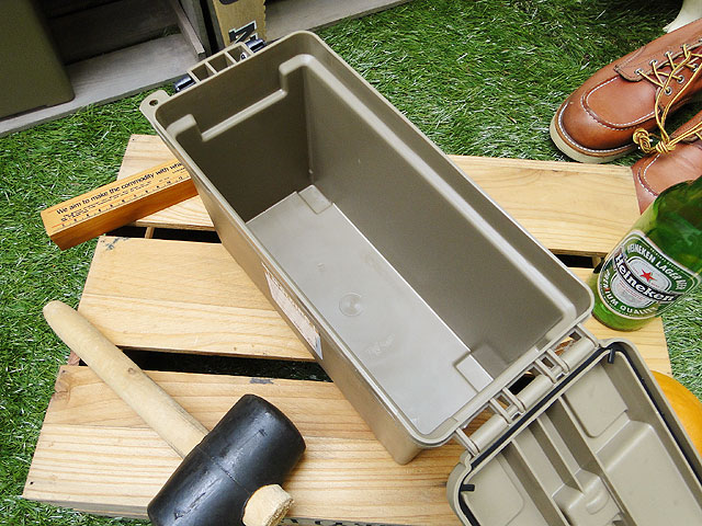 何が画期的かって言うと、本物のアンモボックスだと金属製なので、やっぱり屋外で使う物なんですよね。床とかにキズがいかないかとかを気にしながら使わなきゃなので・・・・。