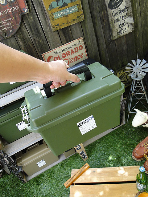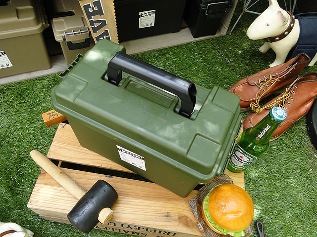 米軍が弾丸ケースとして使うアーモボックスをモチーフに、プラ製で再現したっていう画期的なツールボックスです。
