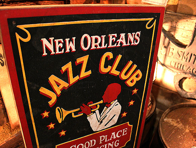 ニューオリンズの名物通りバーボンストリートを歩けば、どこからともなく粋なジャズソングが聞こえてきて、ついつい体でリズムを取っちゃう・・・・そんな本場のジャズクラブをテーマにした木製看板がコレなんです。