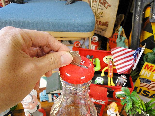 コカ・コーラの象徴、コンツアーボトルを再現したボトル型バンクです。
