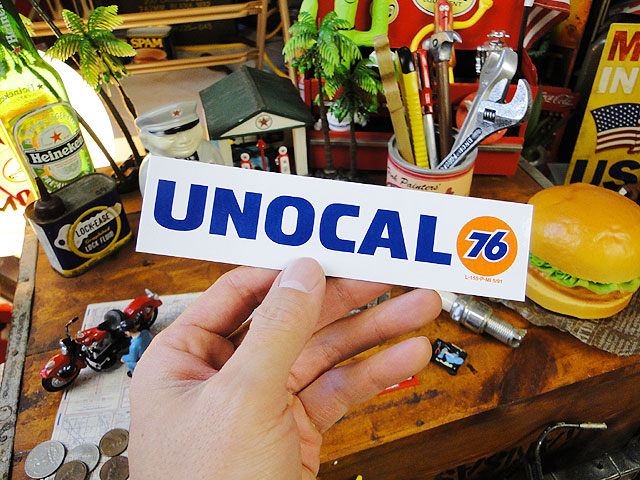 カリフォルニアの人気オイルカンパニー、ユノカル76のミニバンパーステッカーです。 いつもは丸いロゴマークだけのシンプルなデザインが多いんだけど、今回のヤツは、ロゴと一緒に英文字のテキストが入ったレースカーに貼られるようなデザインなの! ただのガソリンスタンドのロゴマークから、一気にサーキット仕様になったって感じで、ボクらの好きなノリ! カリフォルニアオレンジの76ロゴで、NASCARのストックカー風の演出をやっちゃうなんていかが!( ̄ー ̄)ニヤリ☆ サイズ:横15.3cm×縦3.8cm(約)
