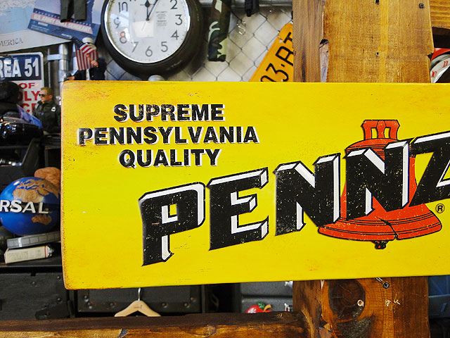 NASCARのスポンサーも務めるオイルブランド、ペンズオイルのエンボスティンサインです。