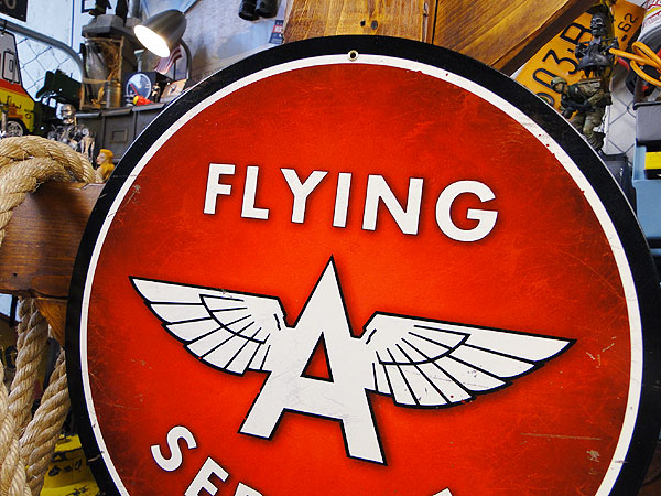 アメリカンオイルメーカー U.S.ヘヴィースチールサイン (フライングエースサービス ブラックフレーム)
