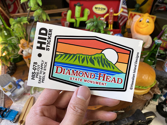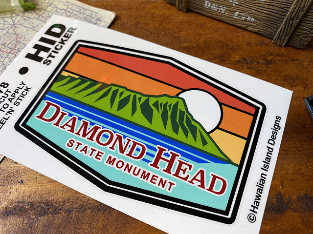 ハワイ・オアフ島のシンボル、ダイヤモンドヘッドをアウトドアステッカー風にデザインしたって1枚なんです。