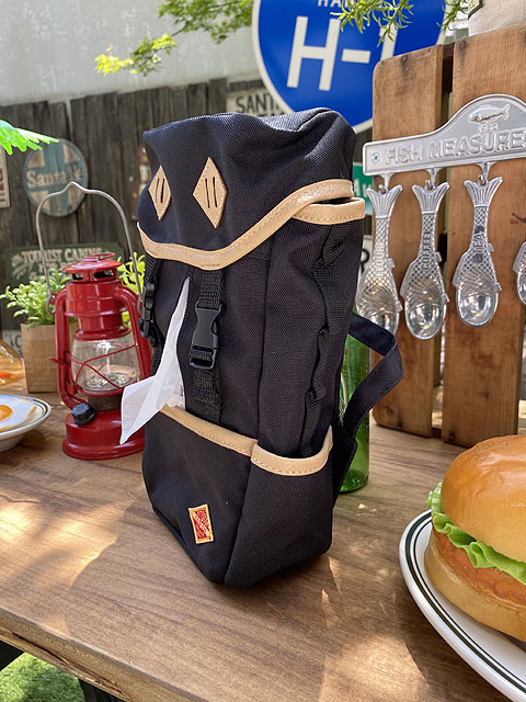 昔からあるアウトドアの定番リュックをモチーフに、デザインまるごとティッシュカバーにしちゃいました。