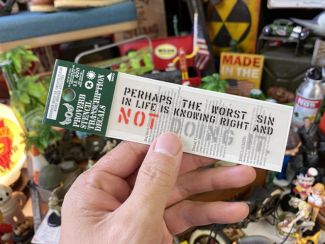 誰もが耳にしたことのある「コトワザ」を、英語のステンシルフォントでステッカーにしたっていう・・・・男ゴコロくすぶるアイテムがこちら!