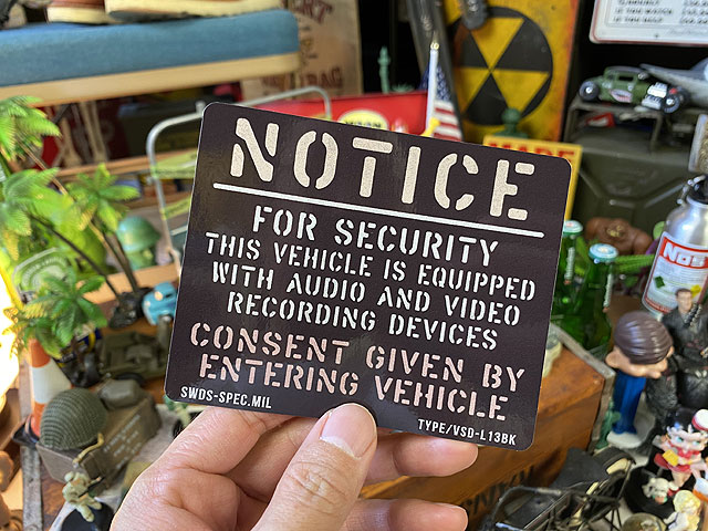 今やすっかりと定着した「ドラレコ録画中」ステッカーをミリタリーテイストで仕上げたっていう・・・・待ってましたのデザイン!
