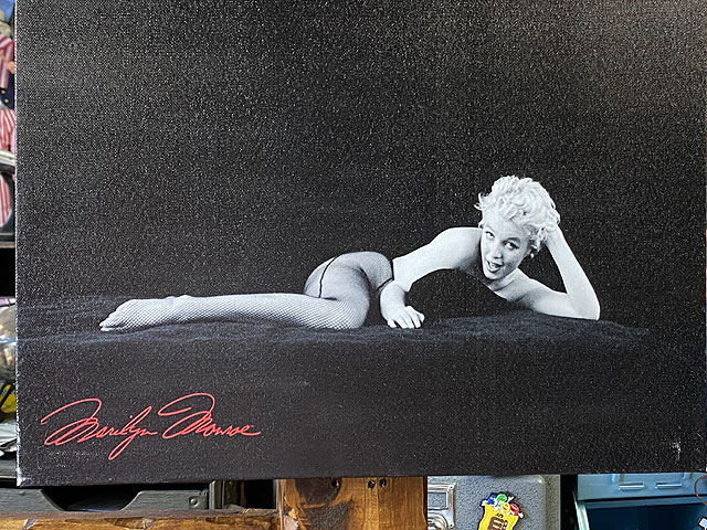 モンローグッズは今でも数々とリリースされますが、今回のはこれまで彼女を捉えた傑作ショットを、キャンバスアートに描いたってっていうウォールアートです。