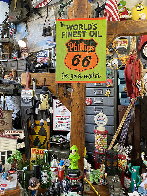 ガレージシーンを飾り付ける時の鉄板アイテム、オイル系のブリキ看板で、フィリップス66のヴィンテージデザインを見つけて来ました!