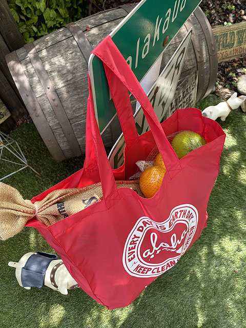 同社が得意とするローカルなハワイ感が今回のエコバッグにもしっかりと表現されていて、ロコたちがズボンのポケットに入れてビーチサンダルでペタペタとスーパーに入ってきそうな感じ・・・・んーこういうのイイわ!