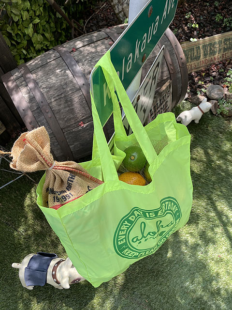 同社が得意とするローカルなハワイ感が今回のエコバッグにもしっかりと表現されていて、ロコたちがズボンのポケットに入れてビーチサンダルでペタペタとスーパーに入ってきそうな感じ・・・・んーこういうのイイわ!