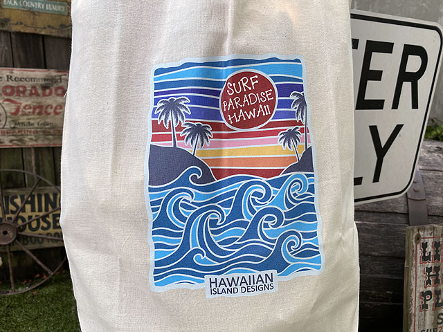 サーフィンの聖地として知られるノースショアを、ハワイアンキルト風のオシャレなタッチでデザインした・・・・ハワイアン・エコバッグです。