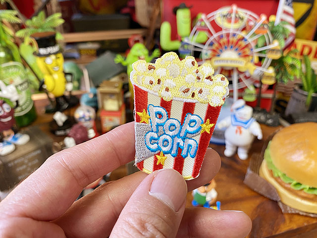 映画館に、遊園地、カーニバルと・・・・楽しいイベントには欠かせないポップコーンをテーマにデザインしたアメリカンポップなワッペンです。