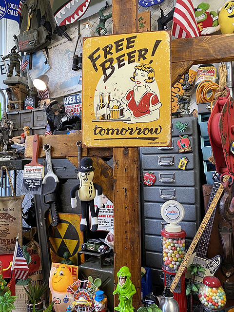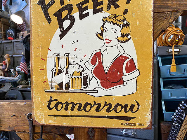 「ビール無料!・・・・・ただし明日ね!」 ブリキ看板