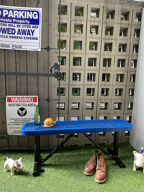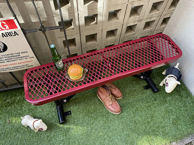 U.S.パークベンチはただ座るだけでのベンチシートではなくて、シーンをアメリカンに仕立て上げてくれる・・・・そんな演出力もまた魅力のベンチなんです。