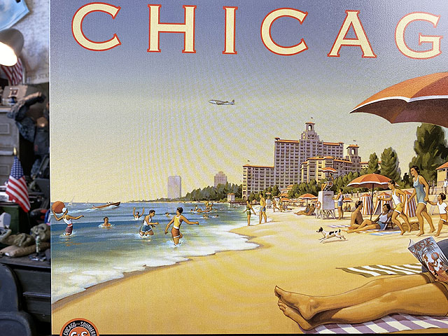 浜辺で過ごす人たちの幸せそうな姿が、この絵を見た人に「ぜひシカゴに行ってみたい」と思わせるデザイン!