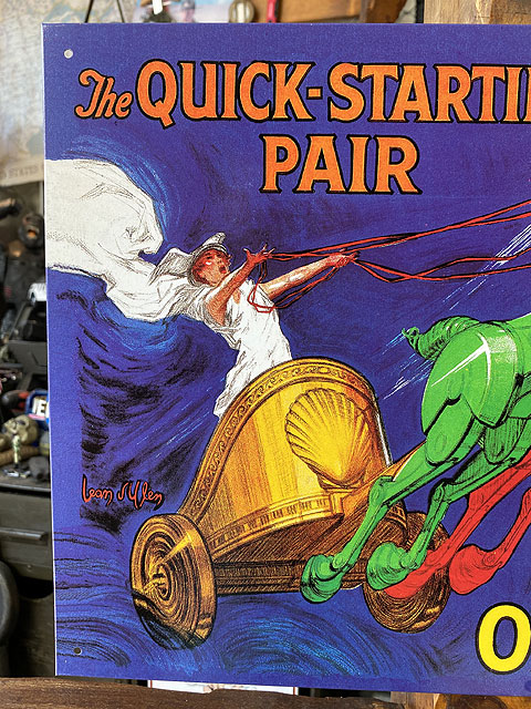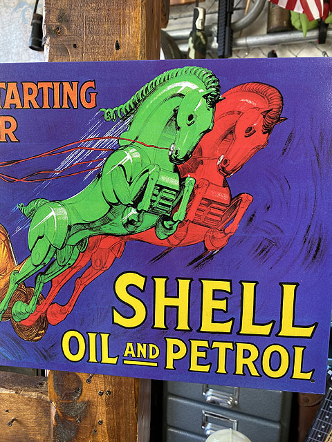 コミックタッチで描かれたオイルメーカー、シェルのブリキ看板です。