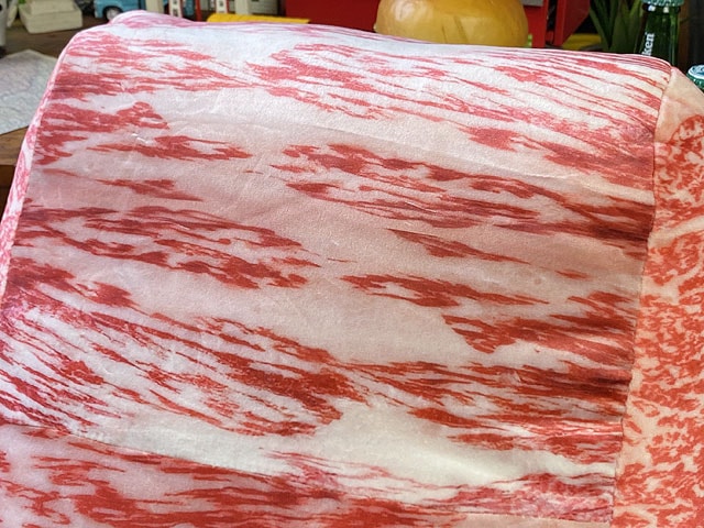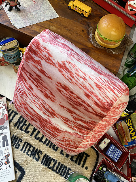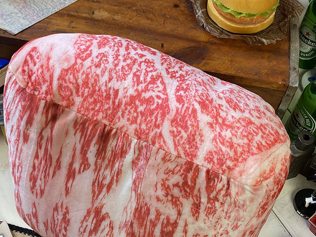 クッションは全面ともリアルなプリントがされていて、最初、白い部分を見た時にうまくプリントできてないって思ったら、すいません、この部分こそ最高級肉の醍醐味である美味しい脂でございました。