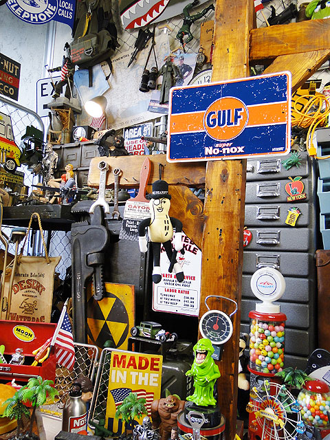 マックイーンファンならこのマークはついつい反応しちゃうでしょ!映画「栄光のル・マン」でガルフカラーのポルシェに乗って走ったあのシーンを!というわけで、そんなストーリーを込めて飾るのがこのガルフのミニブリキ看板です。