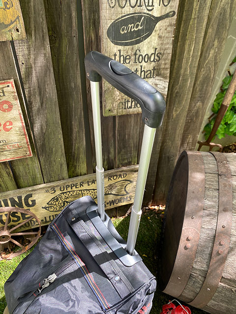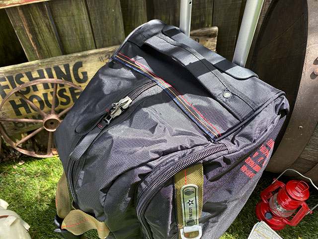 見た目はボストンバッグ仕様なんですが、背面に手持ちバーを内蔵し、タイヤを装備したっていう作りになってるの。