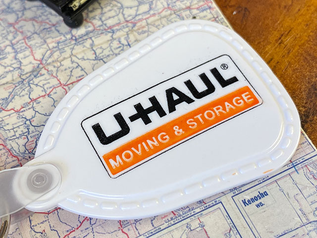 アメリカで倉庫だとかトレーラーなんかを貸し出ししてるデッカイ会社、Uホールのロゴが入ったノベルティタイプのキーホルダーです。
