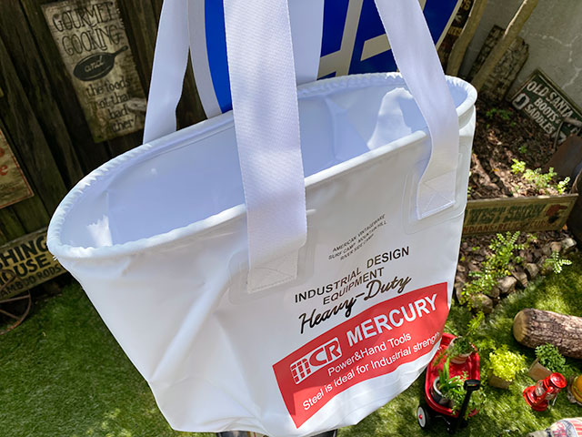 広げるとバケツ型になって、脇に抱えるとトートスタイルで持ち運びできちゃうの!