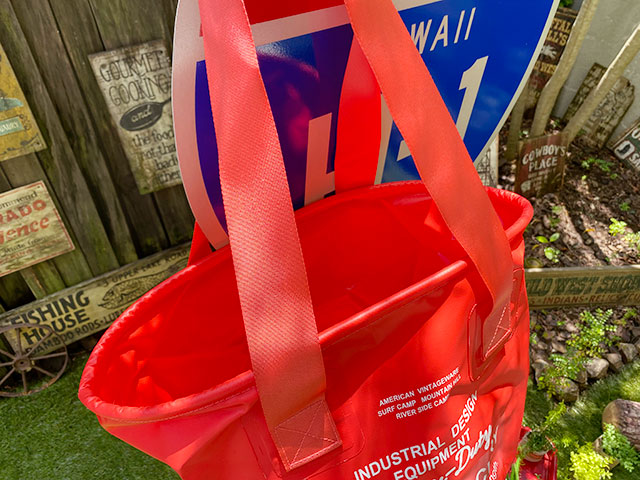 500デニールのターポリン素材で縫製をせずに圧着で仕上げてある防水仕様になっているので、水着やウエットスーツ入れにしたりと、何かと濡れモノが出ちゃうキャンプやレジャーなんかで大活躍してくれるからねー