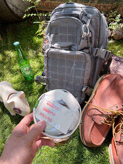 コードリールが付いてるので、改札に来たらボールを引っ張ってそのままタッチすればOK!