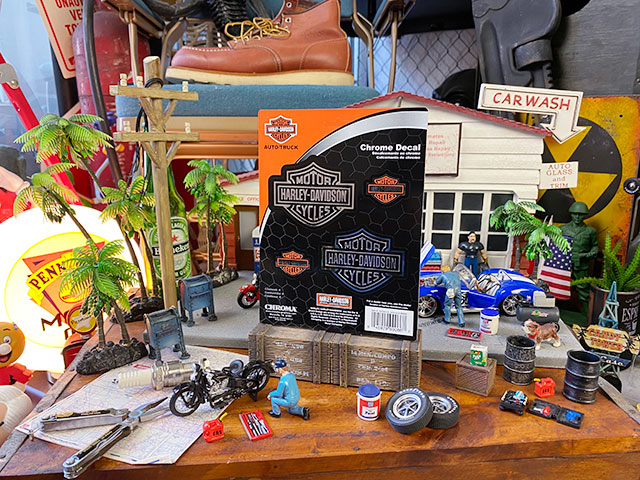 定番のクルマのウインドウから、ケータイやタブレットなどの身近な小物たち、さらにはガレージで使うツールボックスなどなど・・・・ロゴステッカーを貼ればオリジナルのハーレーグッズが完成するっていう・・・・楽しい遊びができちゃうのが人気です。