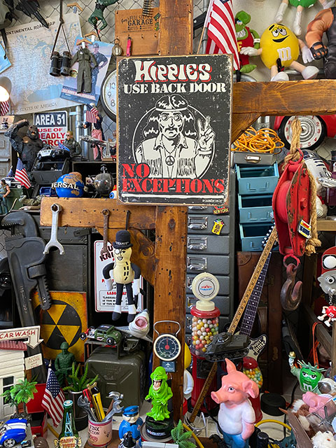 アメリカに昔からあるヒッピーをテーマにした警告看板をブリキ看板で再現したってヤツ!
