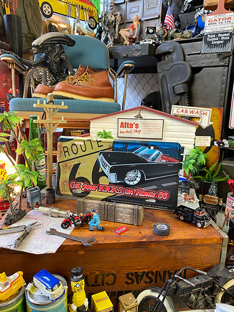 古びてさび付いたルート66看板に、あえてピカピカにレストアされたリンカーンを並べることで、まるでタイムスリップしたかのような時代感を感じられる構図が絶妙でしょ!