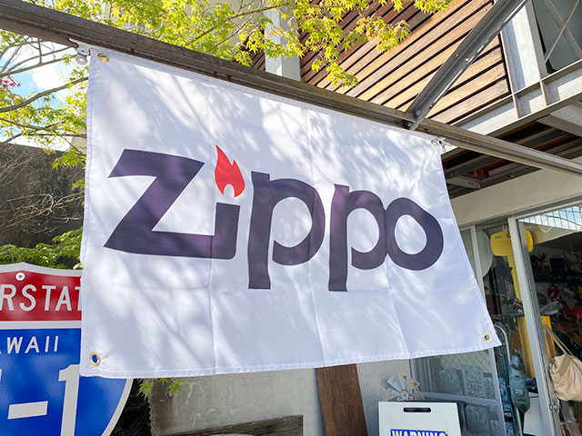 世界中にコレクターがいると言われるオイルライターの代名詞、ジッポーのロゴがデザインされたガレージフラッグです。