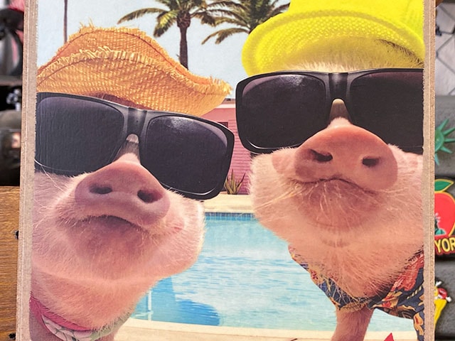 アロハシャツにサングラスで決めた愛嬌満点のブタの笑えるツーショット!