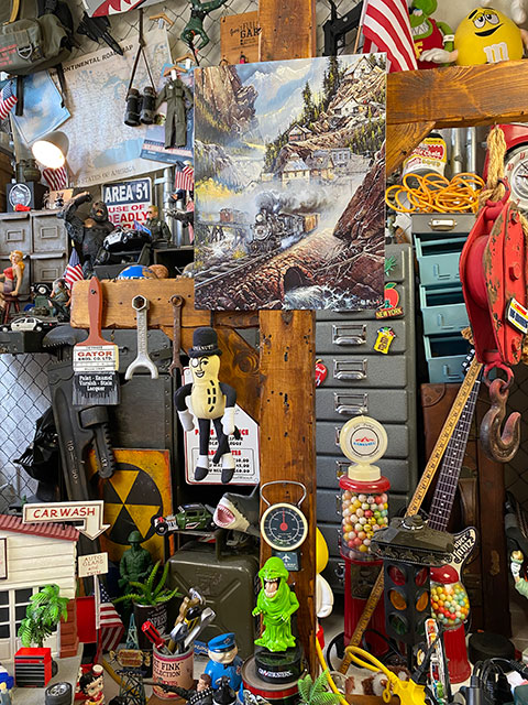 古き良きアメリカの景色を描いてきた画家、テッド・ブレイロック氏によって描かれた昔の蒸気機関車のブリキ看板です。