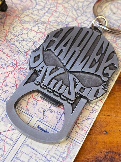 ハーレーダビッドソン オフィシャル メタルキーホルダー (スカル ボトルオープナー)