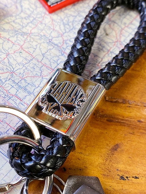 ハーレーダビッドソン オフィシャル キーホルダー (スカル ブラックレザーロープ)