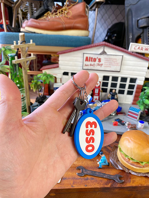 アメリカのガススタンドでノベルティでもらえそうな・・・・昔ながらのエッソのラバーキーホルダーです。