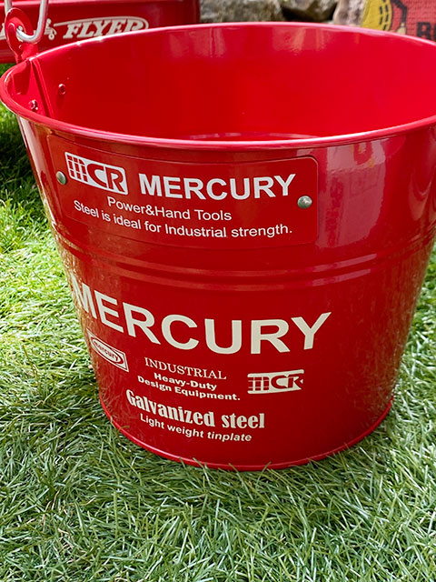 使い込んで行くうちに小傷や凹みなどで年期が入ってくると、そのヤレた雰囲気がまたカッコイイ味わいになるのがマーキュリーバケツの楽しみでもあります。