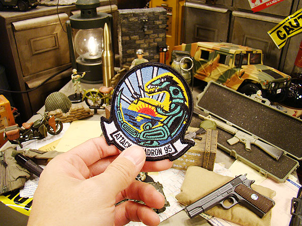 トカゲがモチーフになったユニークなVA-95のミリタリーワッペンです。トカゲってインディアンでもラッキーアニマルとして愛されてきた動物だし、恐竜好きなアメリカ人にとってはこういうデザインはかなりツボなのかもね!トカゲをモチーフにしてこれだけミリタリーっぽくまとめちゃうところも彼らならではのセンスでしょ!強そうなイメージでフライトジャケットをカスタムしたいならこのグリーンリザーズはその期待に応えてくれるはず!( ̄ー ̄)ニヤリ☆サイズ:8.5cm×8cm(約)