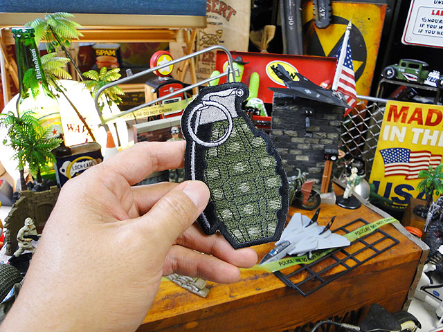 昔のコンバット映画に出てくるパイナップル型の手榴弾をそのまんまデザインにしたミリタリーワッペンです。 パッと見て誰もがそれとわかるシルエットなのがポイント!このデザイン、ワンポイントアクセントに使うと個性的な印象を出せておもしろいんです。 当然アーミー系のミリタリーワッペンとの相性も抜群なので、それと一緒にコンビネーションで貼るのが正解。胸ポケットや腕などにまるで手榴弾を装備してるかのように貼ると見た目にウケるのでオススメです(〃 ̄▽ ̄〃) サイズ:横6cm×縦10cm(約)