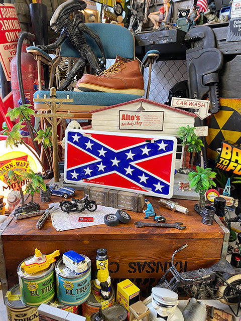 カスタムバイカーやロカビリーたちが好むレベルフラッグは、古き良きアメリカを守り、そして反骨スピリットの象徴として愛され続けてる・・・・いわばシンボルフラッグです。 そんなフラッグをライセンスプレートで再現した・・・・昔から定番人気のプレートです。 ロカリビーシーンやバイカーシーンを演出したいなら、このプレートは本場の空気感を醸し出す良い盛り上げ役になってくれるはず! 古き良きアメリカを愛する者立ちよ永遠に!( ̄ー ̄)ニヤリ☆ サイズ:横30.5cm×縦15cm(約) 材質:ブリキ