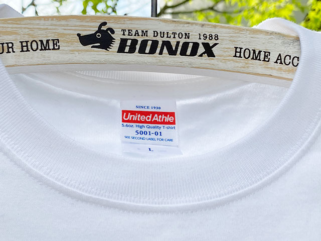Tシャツのボディはユナイテッドアスレの5.6オンスのハイクオリティーTシャツを使ってますので、着心地も良くてしっかりしてます。首リブも丈夫なダブルステッチ仕様です。