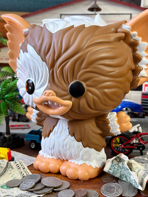 アメコミヒーローモノのバストバンクで有名なカリフォルニアのメーカー「モノグラム社」から、映画「グレムリン」に登場した人気キャラ、ギズモのフィギュア型バンクがリリースされたのをゲットしてきました!